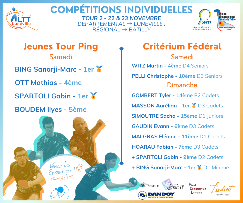 2ème tour du Critérium fédéral et du Jeunes Tour Ping