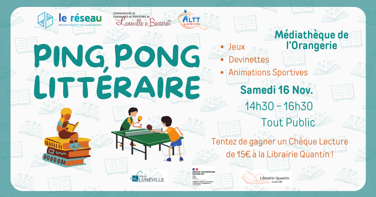 La Médiathèque de Lunéville, la Librairie Quantin et l'ALTT vous présentent : Le Ping Littéraire !